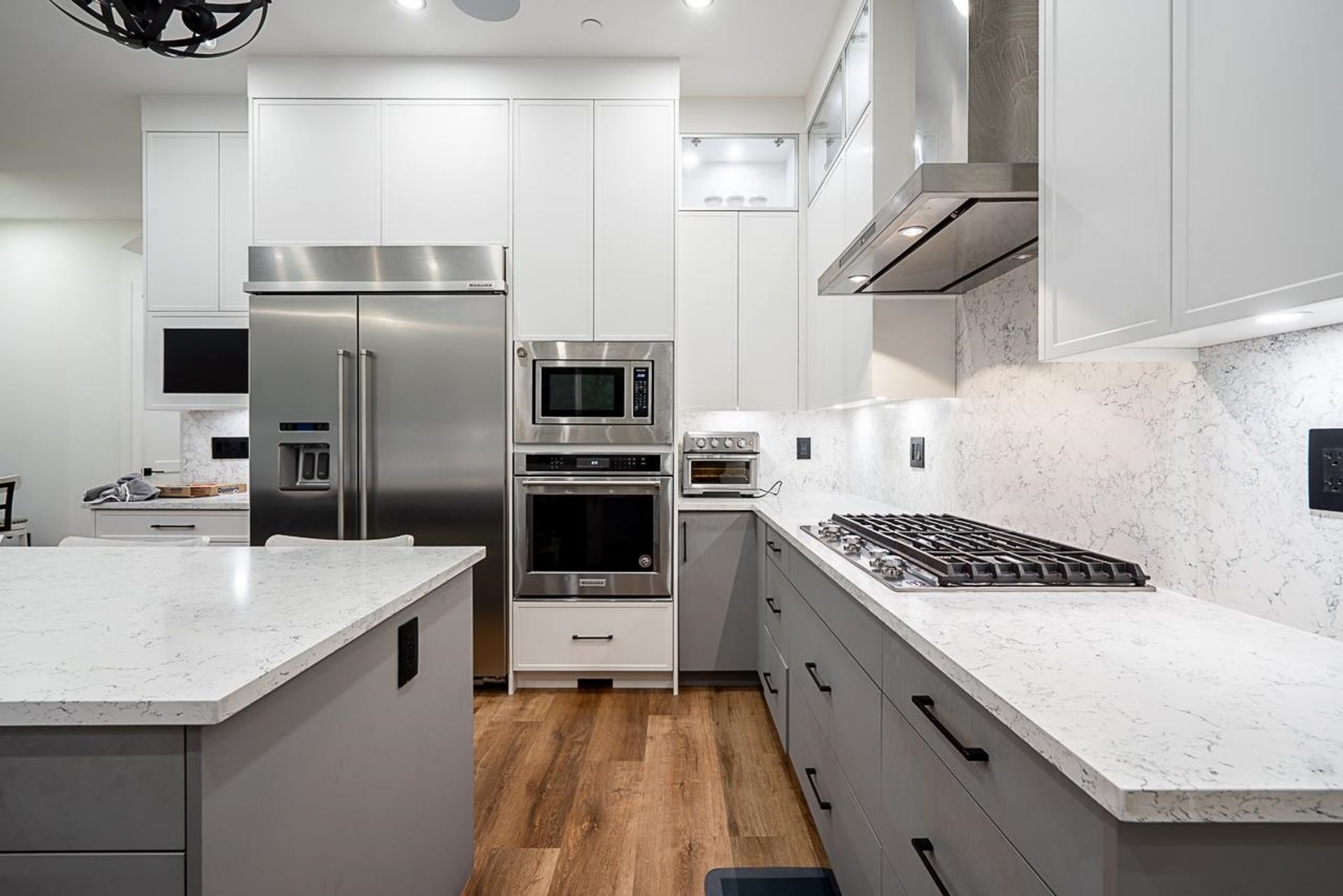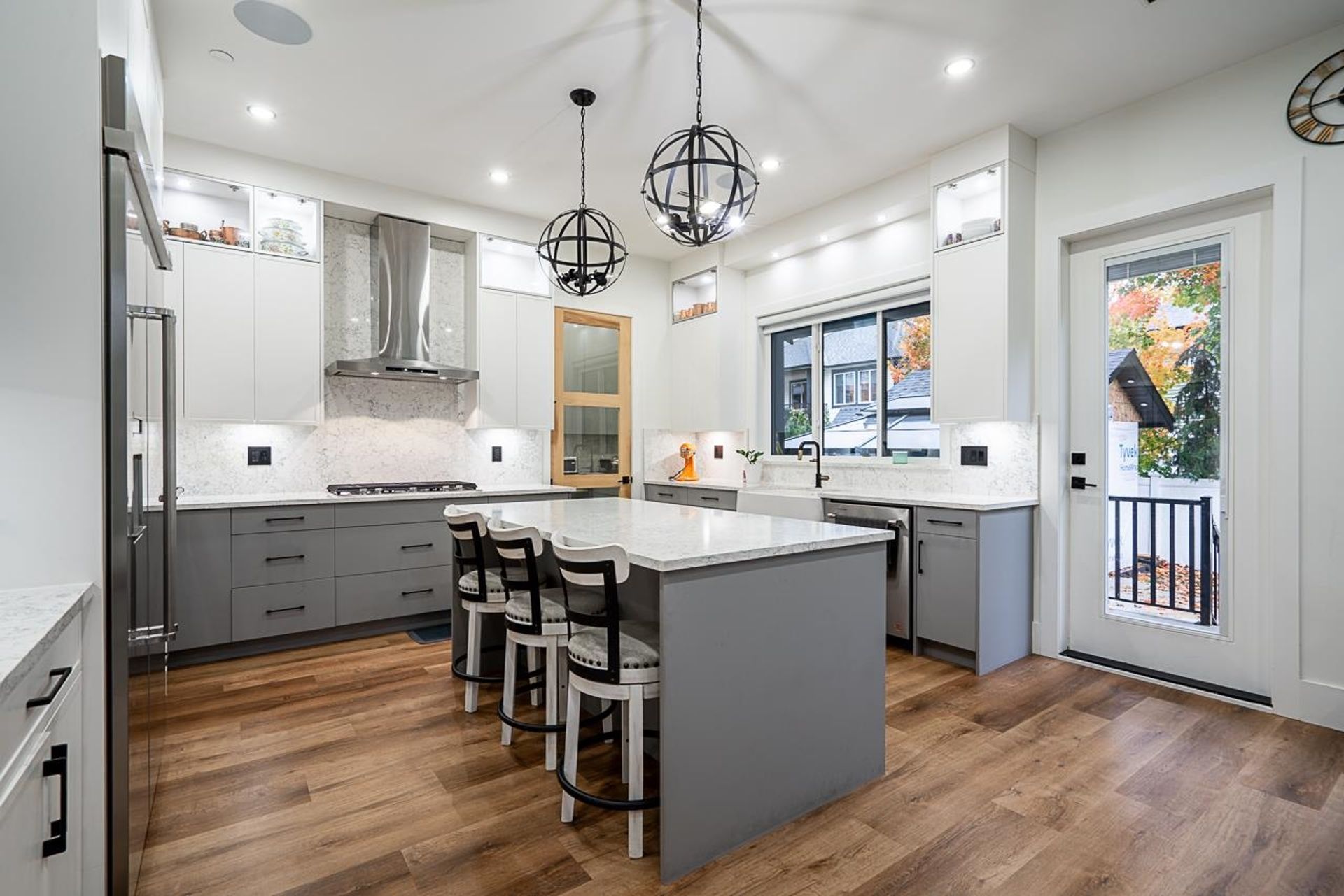 Rarely available! This exceptional custom-built home was designed by the owner as a personal residence and showcases premium upgrades throughout. Enjoy radiant in-floor heating, central A/C, and two beautiful custom oak staircases. The main floor features a bedroom with ensuite—perfect for guests or extended family. The gourmet kitchen offers fully integrated appliances, a gas cooktop, custom millwork, and a separate spice kitchen with a full stainless-steel appliance package. Smart-home ready and pre-wired for surround sound, this home features sleek black plumbing fixtures and a covered patio equipped for a gas BBQ and outdoor kitchen—ideal for entertaining. The lower level includes a 2-bedroom legal suite, perfect as a mortgage helper. Don't miss out on this home!